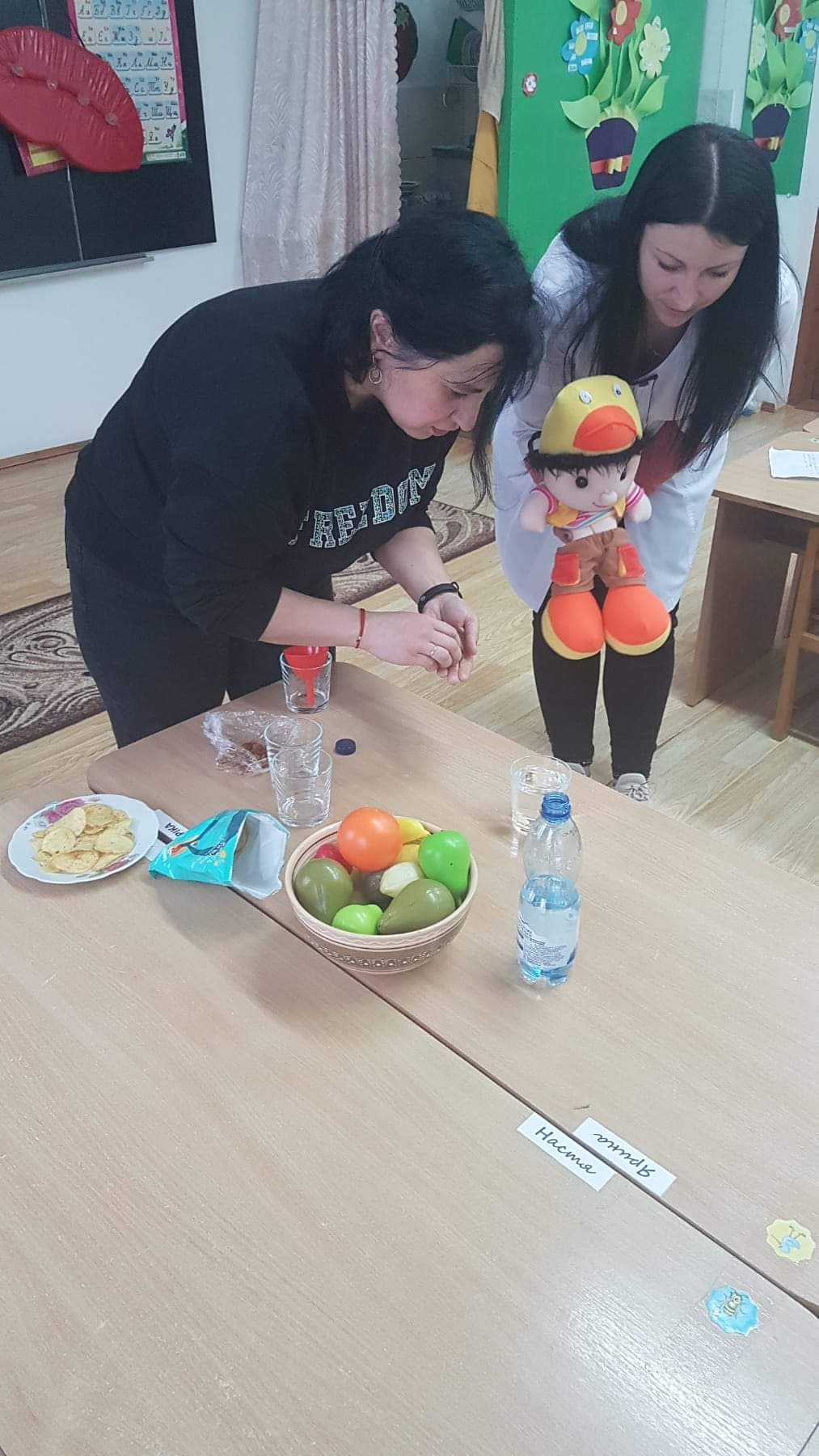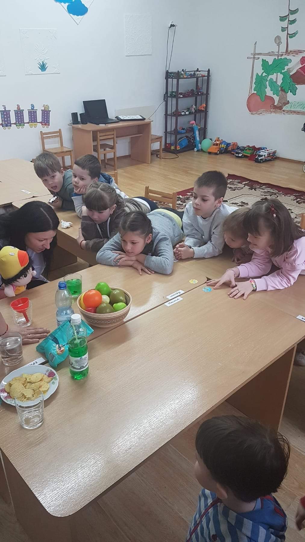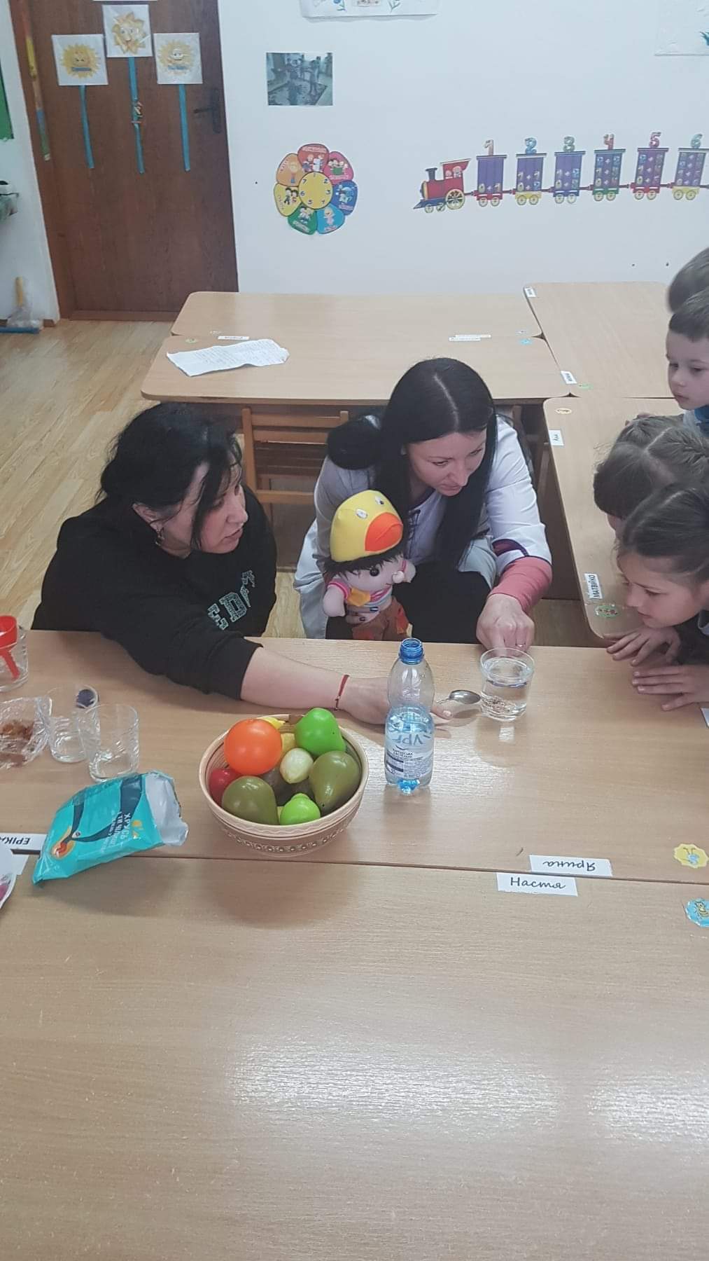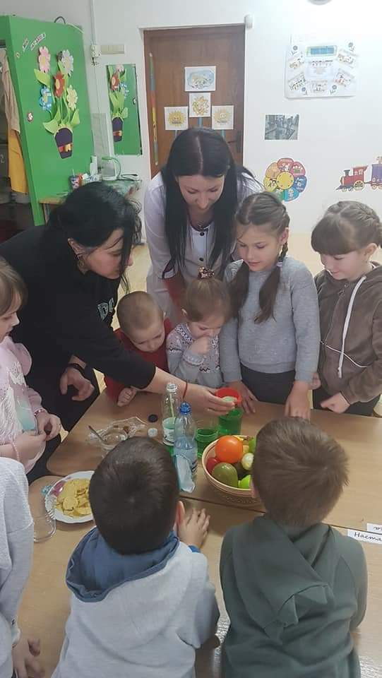 Тому ми із допомогою нашої чудової медсестри п. Ірини, вчили ляльку Максима що шкідливо їсти, а що корисно.