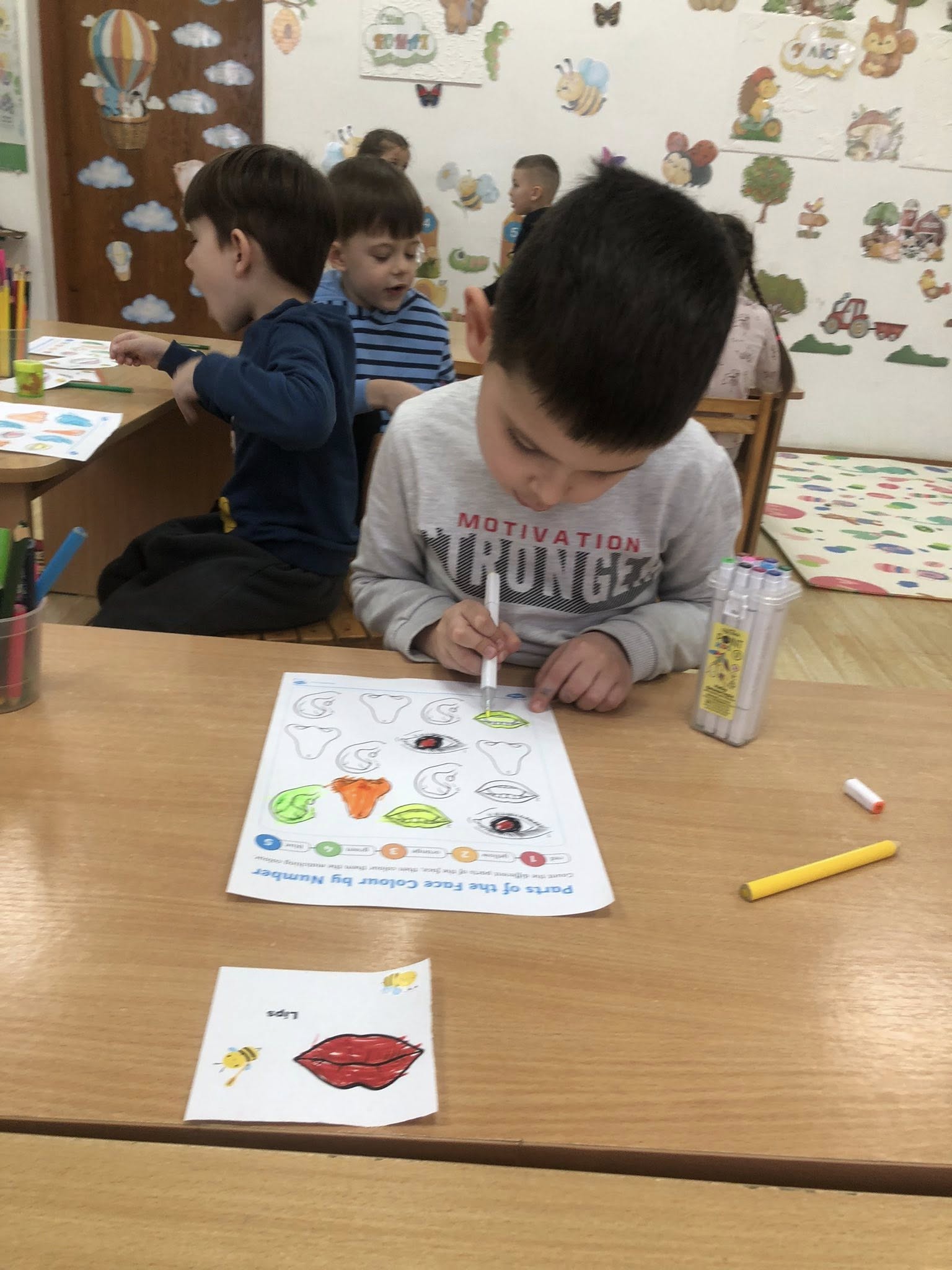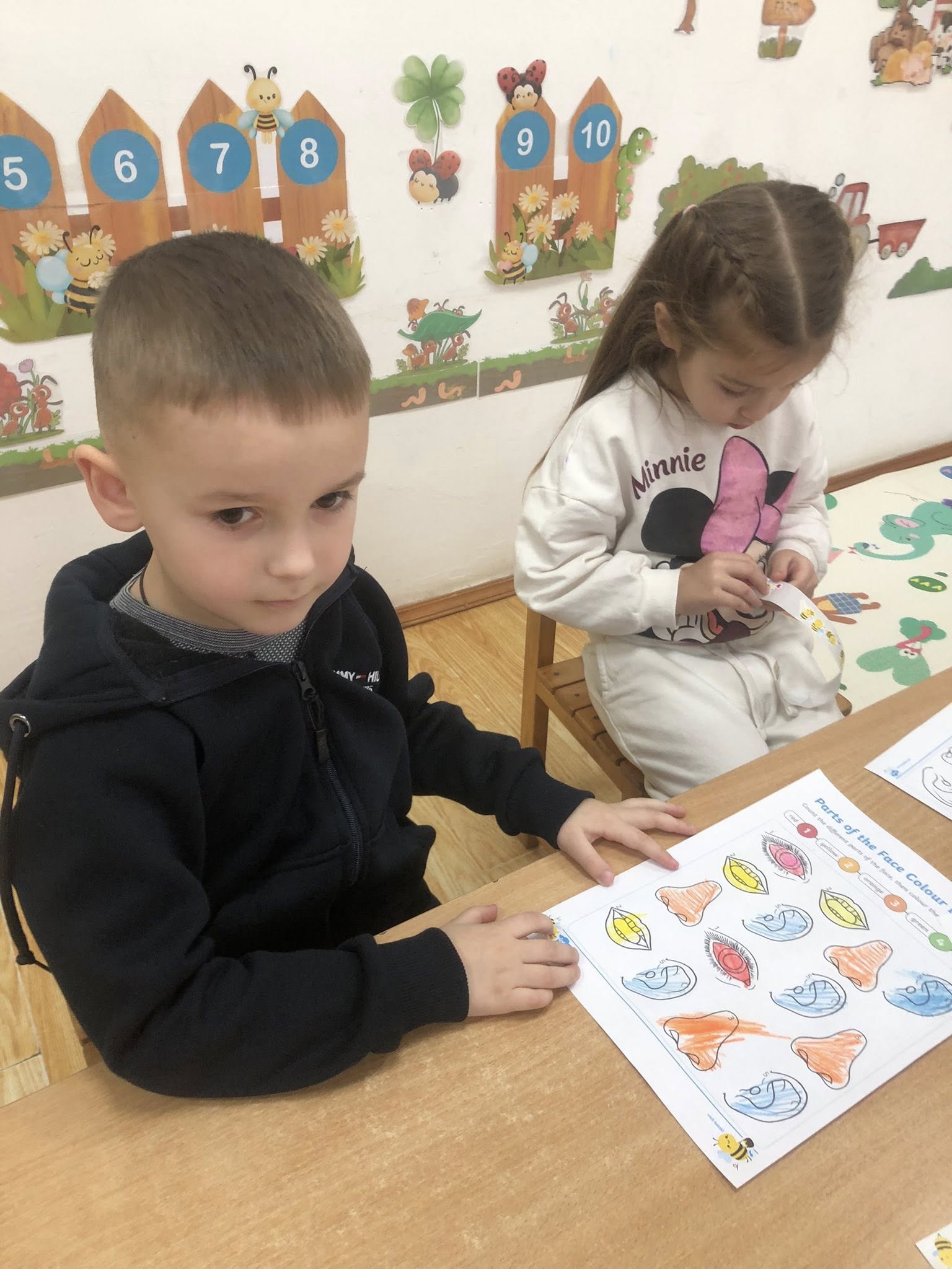 На підсумковому занятті 20 січня ми повторили тему “Parts of Body” у веселій та активній формі. Наші малята із задоволенням називали та показували: head, shoulders, knees, toes, eyes, ears, mouth, nose.